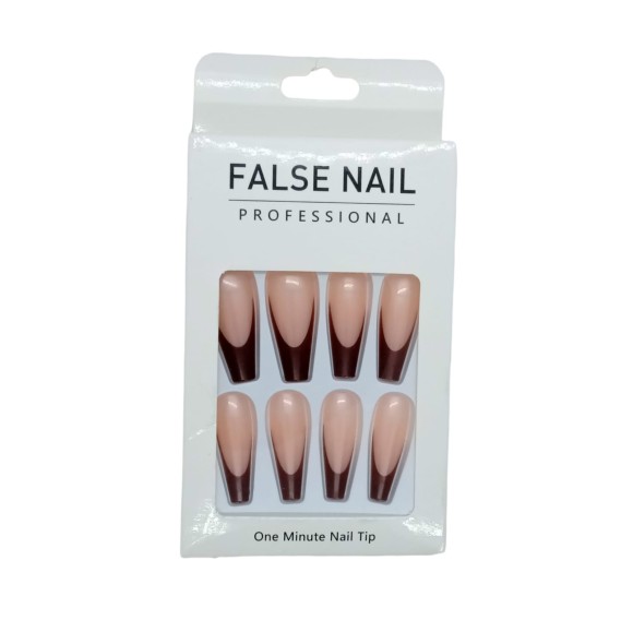 FALSE NAIL UNHA POSTIÇA C/12 ROSA COM MARROM